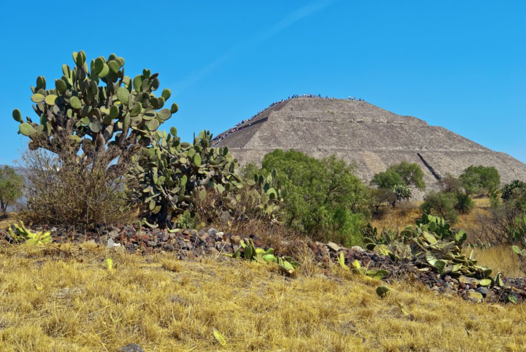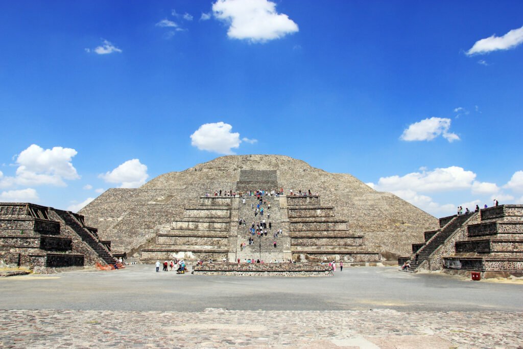The Pyramid of the Sun and the Pyramid of the Moon are standing high above the blue sky. Hike up them and have a breathtaking view and one can just dream about how life was thousands of years ago.