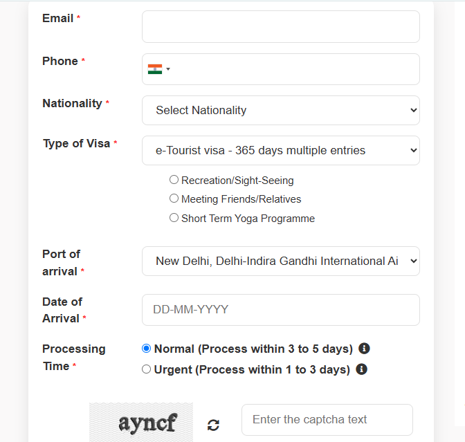 - Online Application – Fill in the eVisa form, and select the type, which best applies to your travel purpose.