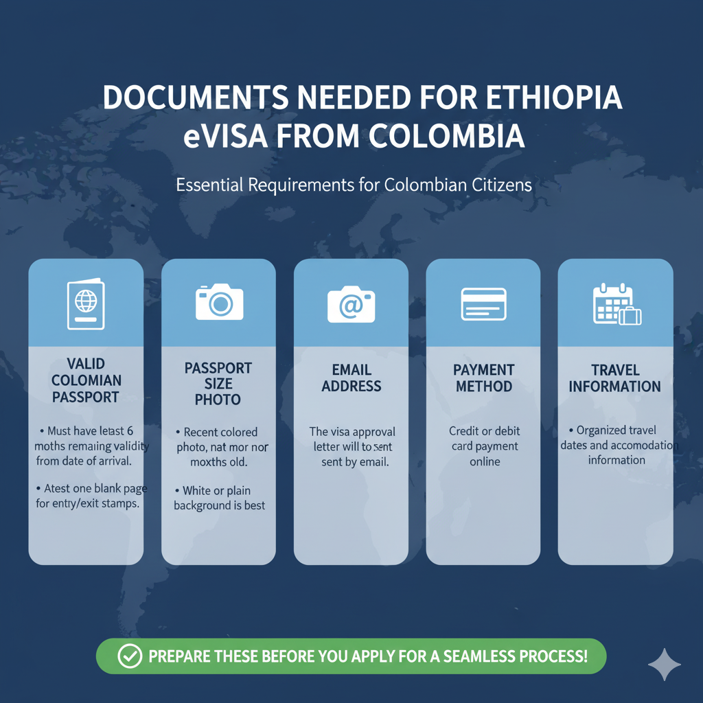 Documents needed for Ethiopia eVisa from Colombia