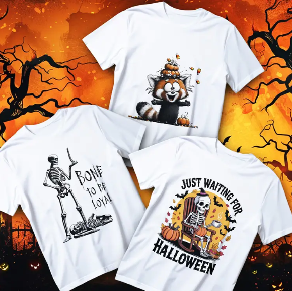 These designs strike the perfect balance between festive and fashionable — ideal for both Halloween lovers and year-round graphic tee fans.