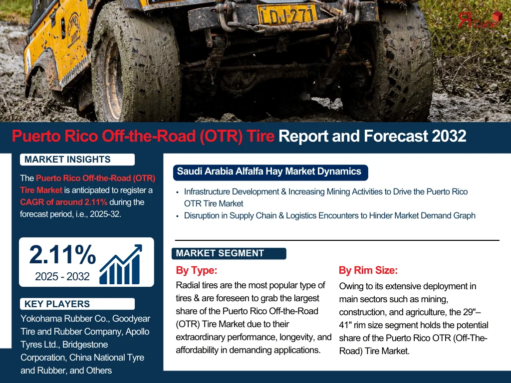 According to recent study by The Report Cube the Puerto Rico Off-the-Road (OTR) Tire Market is anticipated to register a CAGR of around 2.11% during the forecast period, i.e., 2025-32.