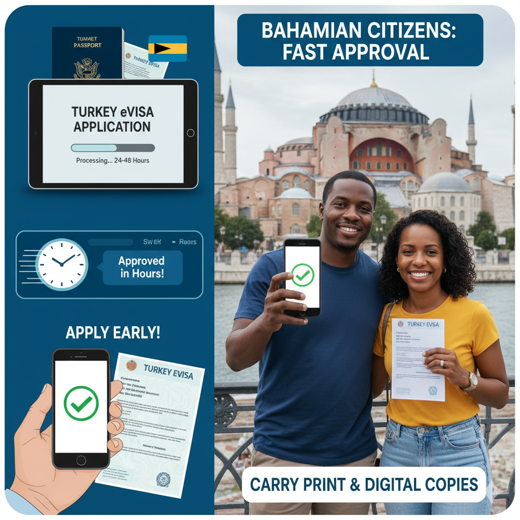 Bahamian citizens get the approved Turkey eVisa quickly.
